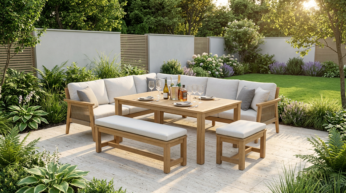 Bremen Corner Set is a premium outdoor corner sofa collection that blends dining and lounging in one cohesive space
