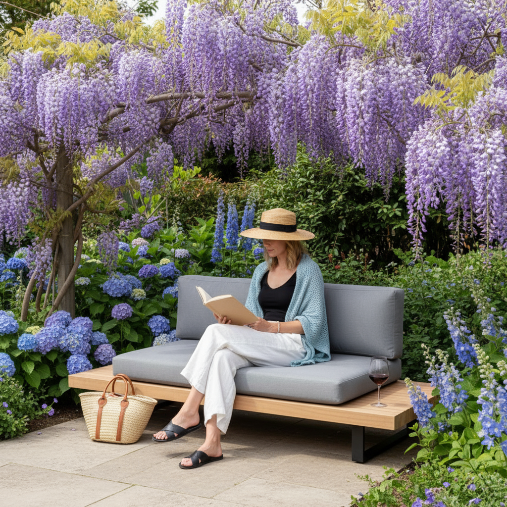 Lorient Outdoor Sofa Set is a contemporary garden lounge ensemble with generously cushioned seating and a matching coffee table, perfect for creating a relaxed outdoor living corner on patios and terraces.